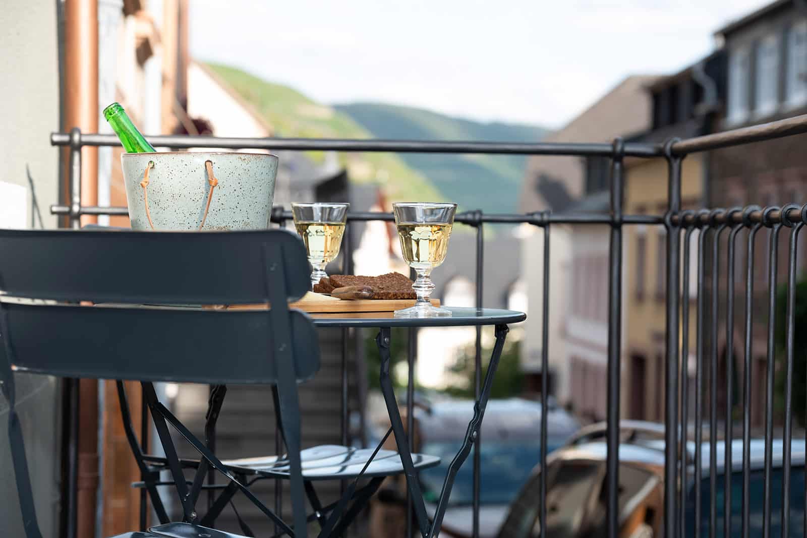 Kitti liebt Rosé im Sommer, im Winter schwenkt sie um auf Rotwein. Das Interieur muss zu beidem passen, das Outfit selbstverständlich auch. Unser kleinstes Apartment passt vor allem für die spontane Entdeckungsreise an die Mosel: Kuschelig, unkompliziert und mit allem ausgestattet, was man für den Kurztrip braucht.
